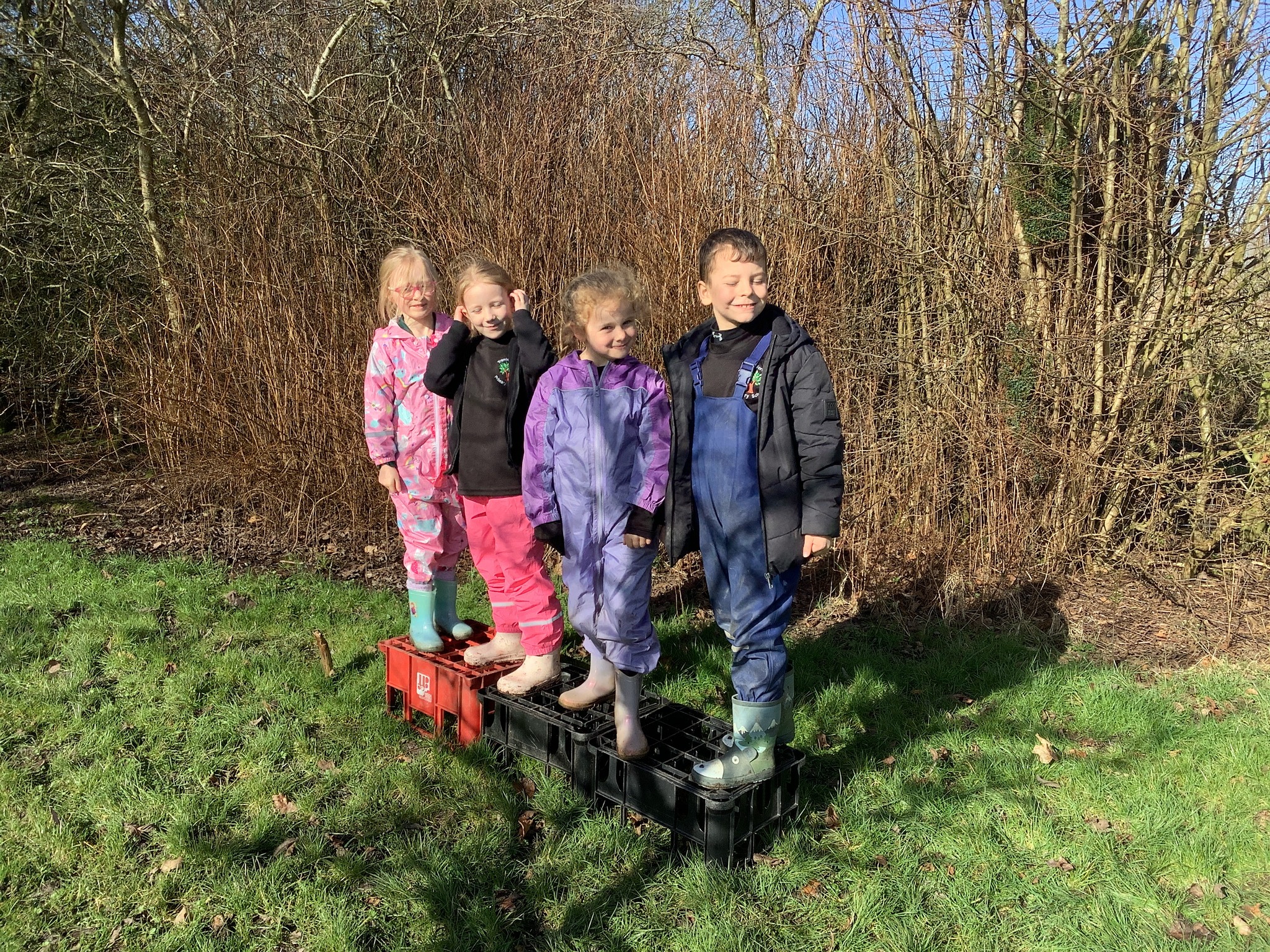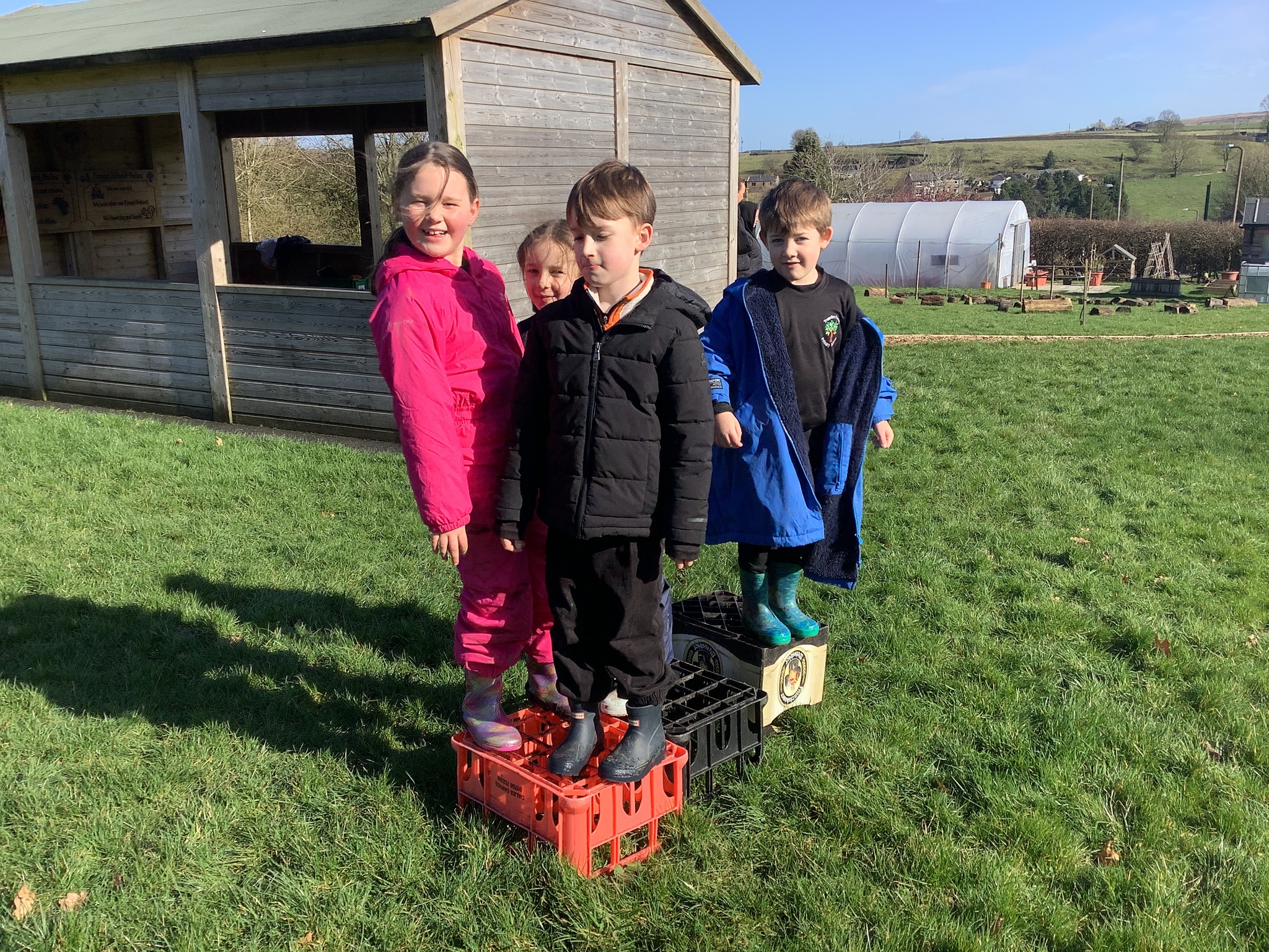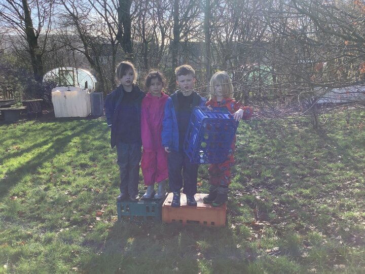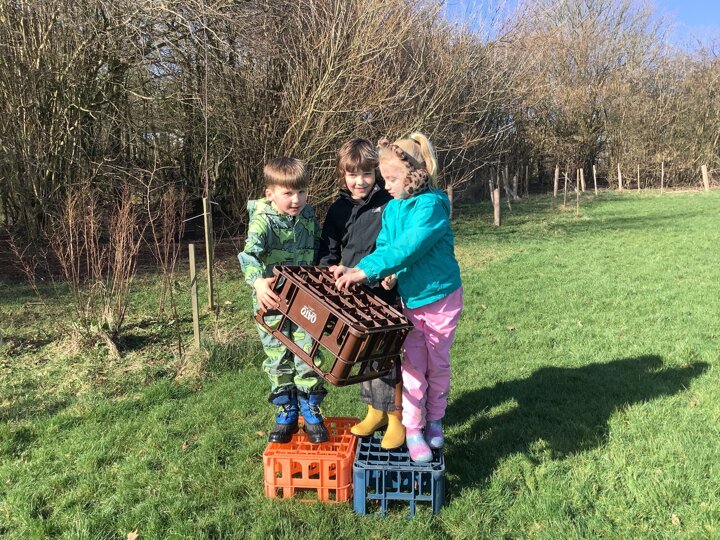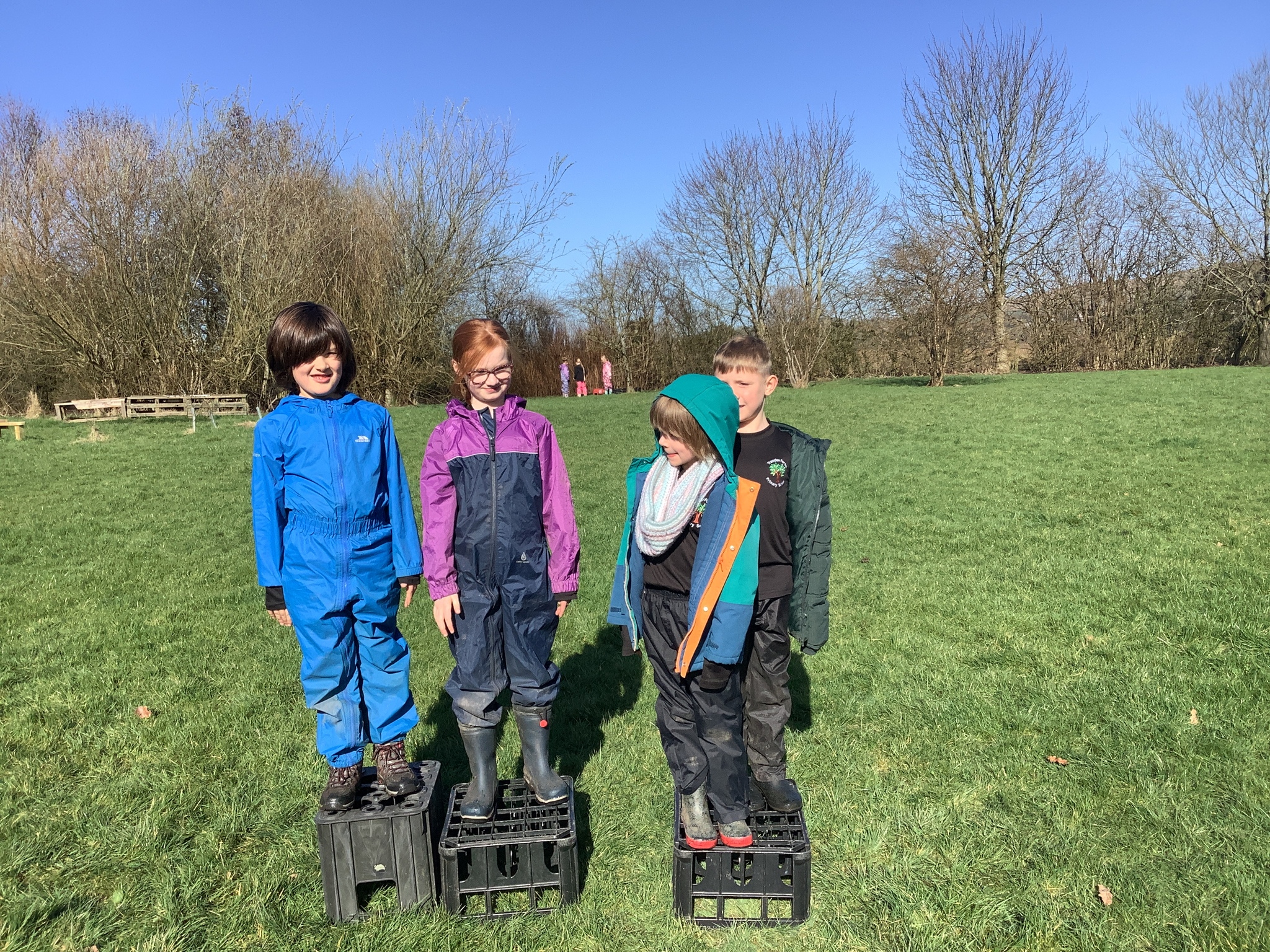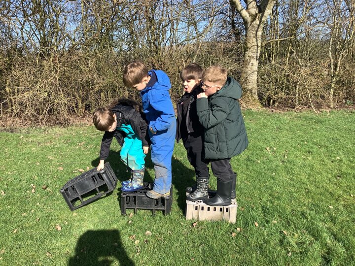In the morning, the children headed to Forest School where they took on a fantastic teamwork challenge. Using crates, they worked together to move from one side of the field to the other without touching the ground. It was lovely to see them communicating, problem-solving, and encouraging one another as they figured out the best way to succeed.