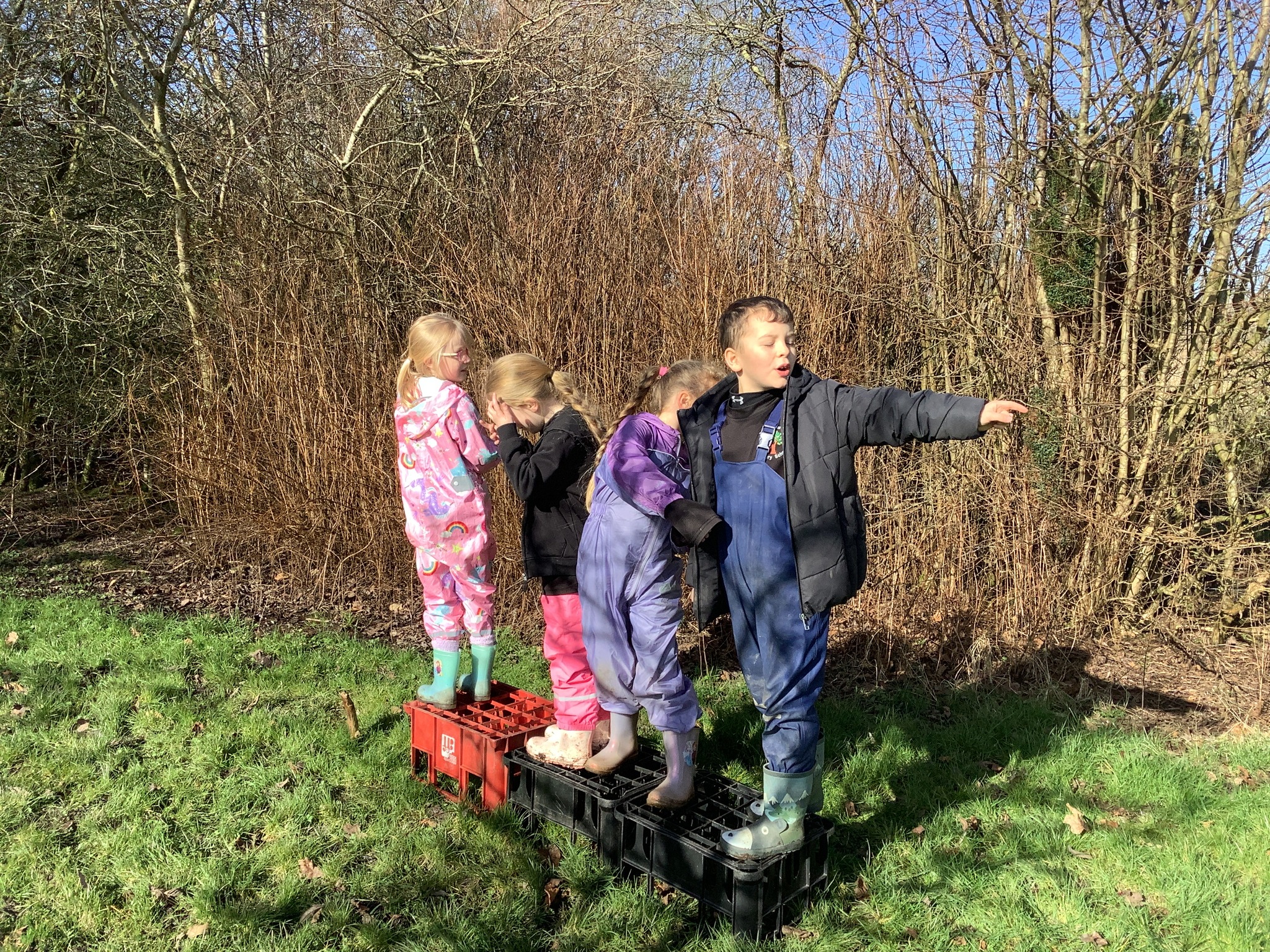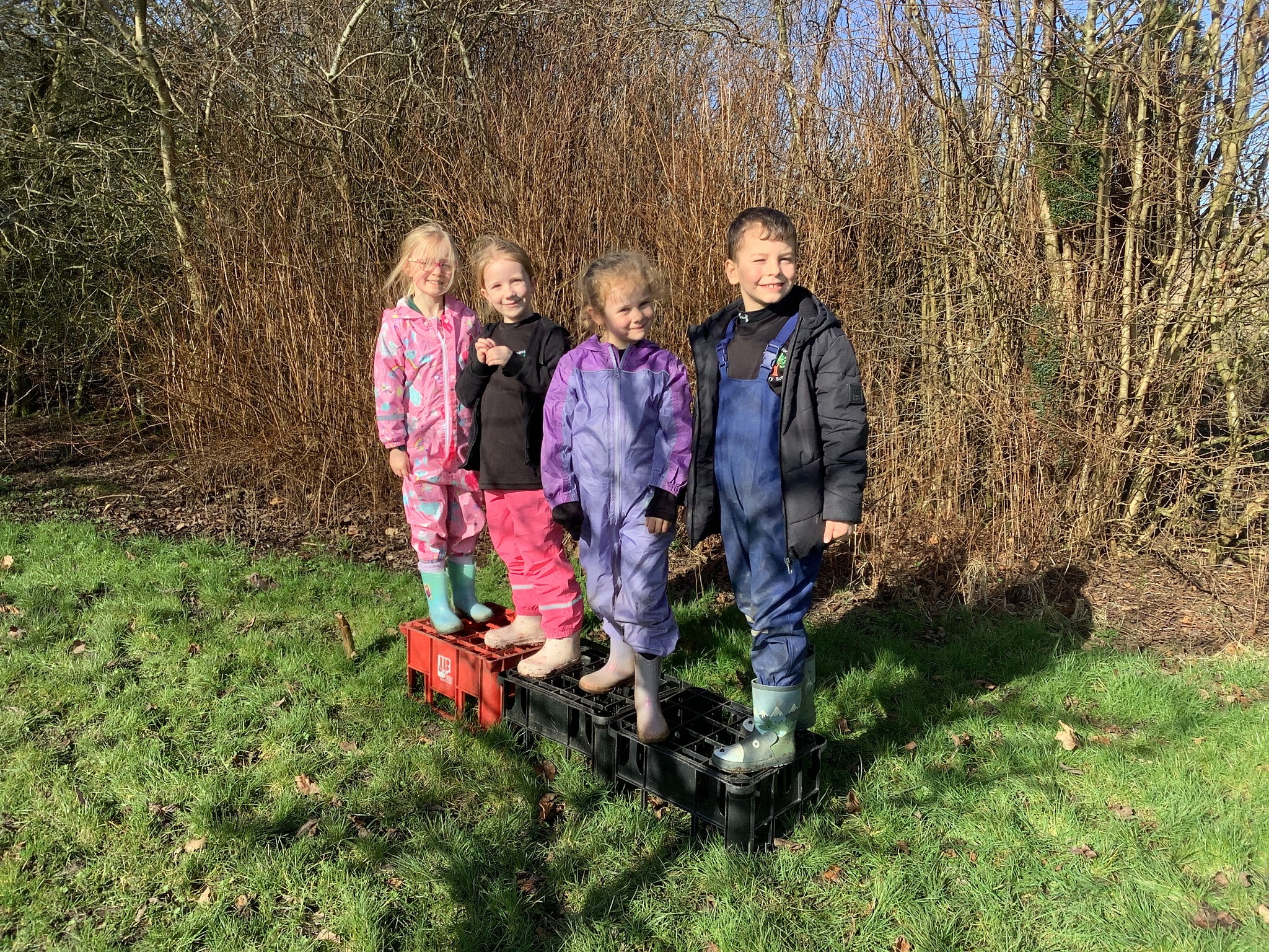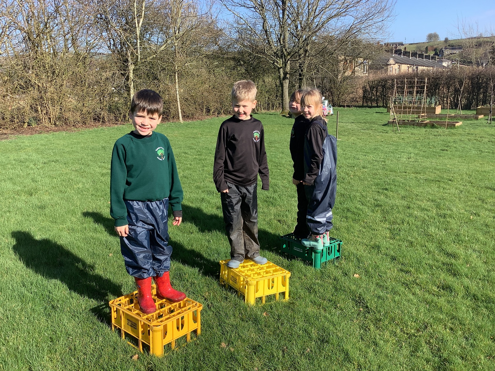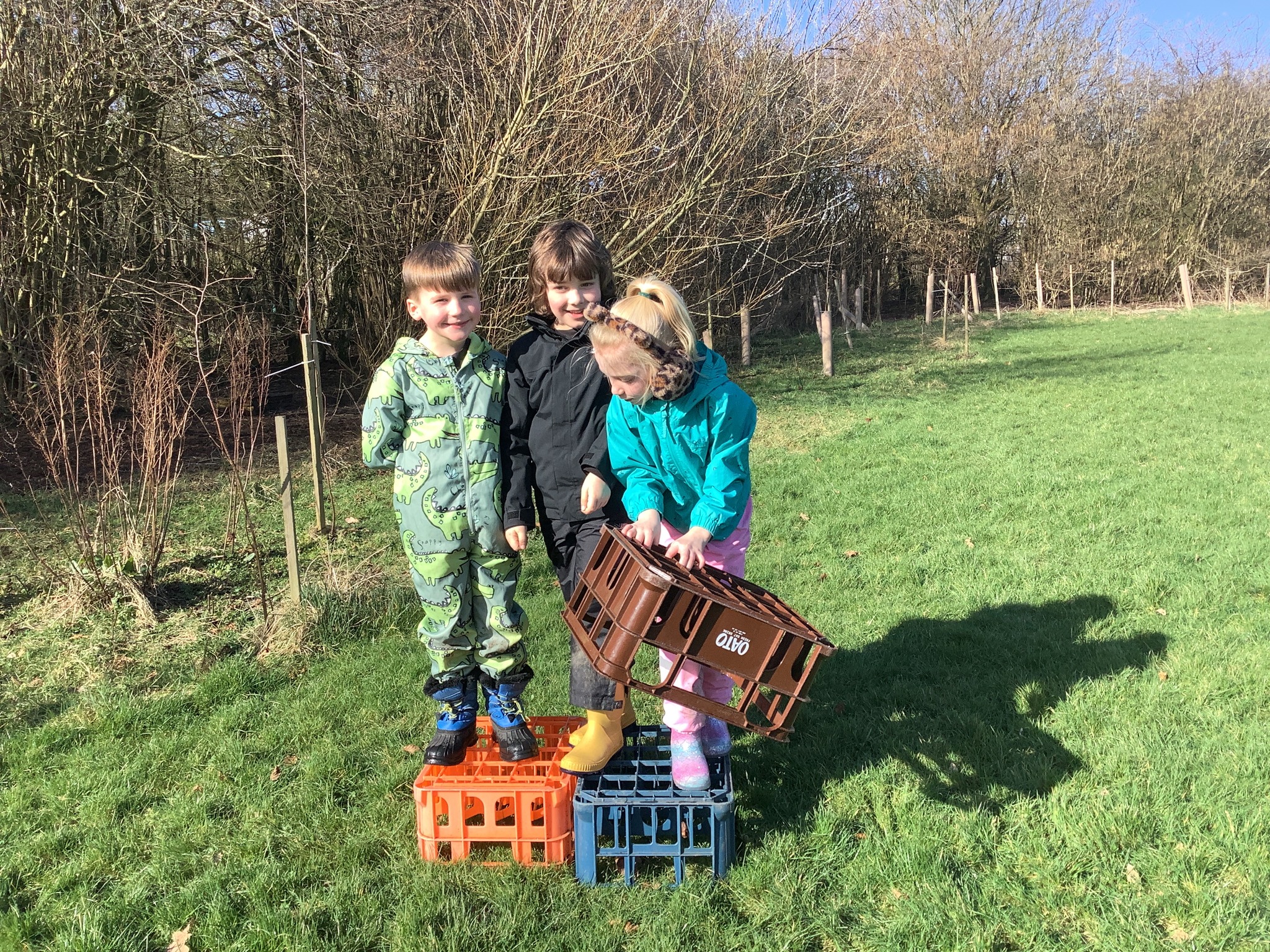 In the morning, the children headed to Forest School where they took on a fantastic teamwork challenge. Using crates, they worked together to move from one side of the field to the other without touching the ground. It was lovely to see them communicating, problem-solving, and encouraging one another as they figured out the best way to succeed.