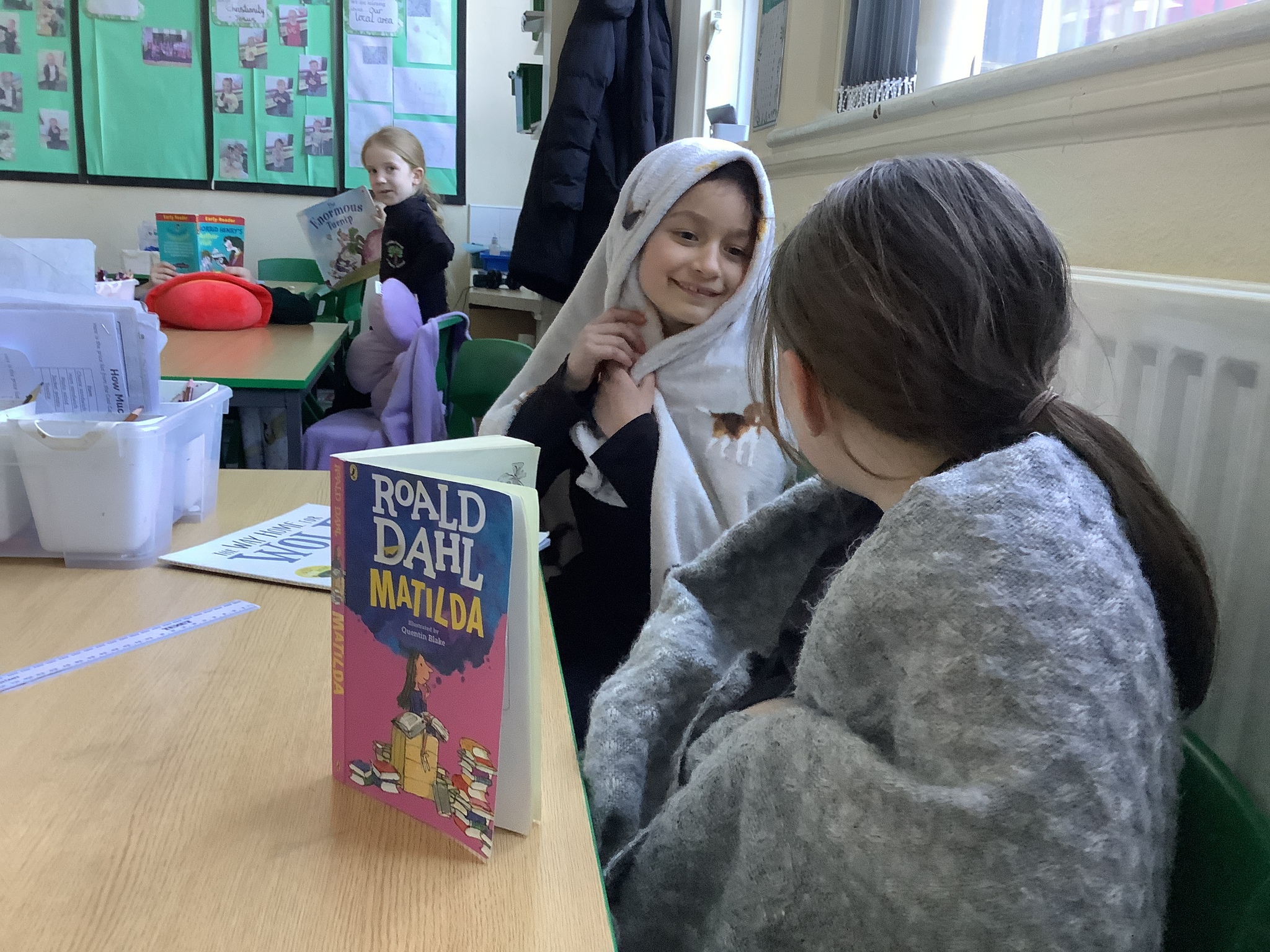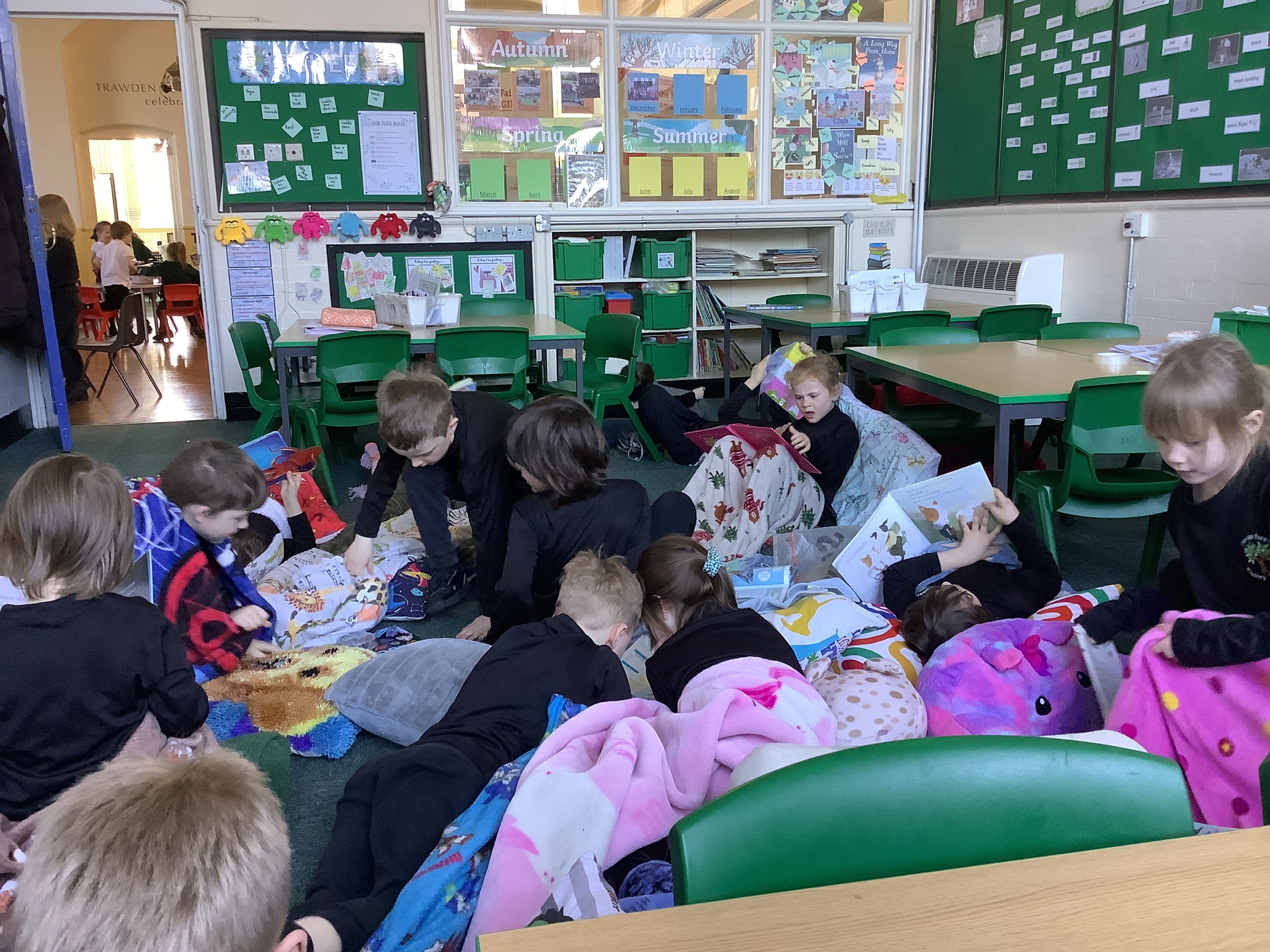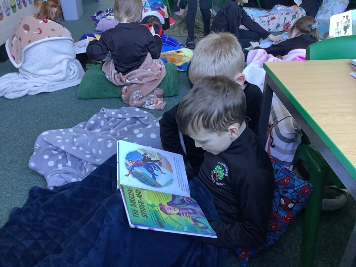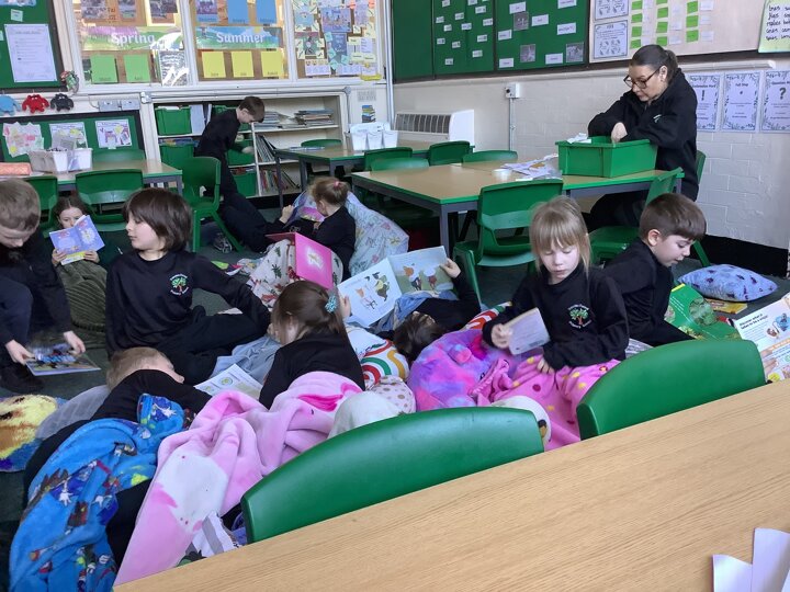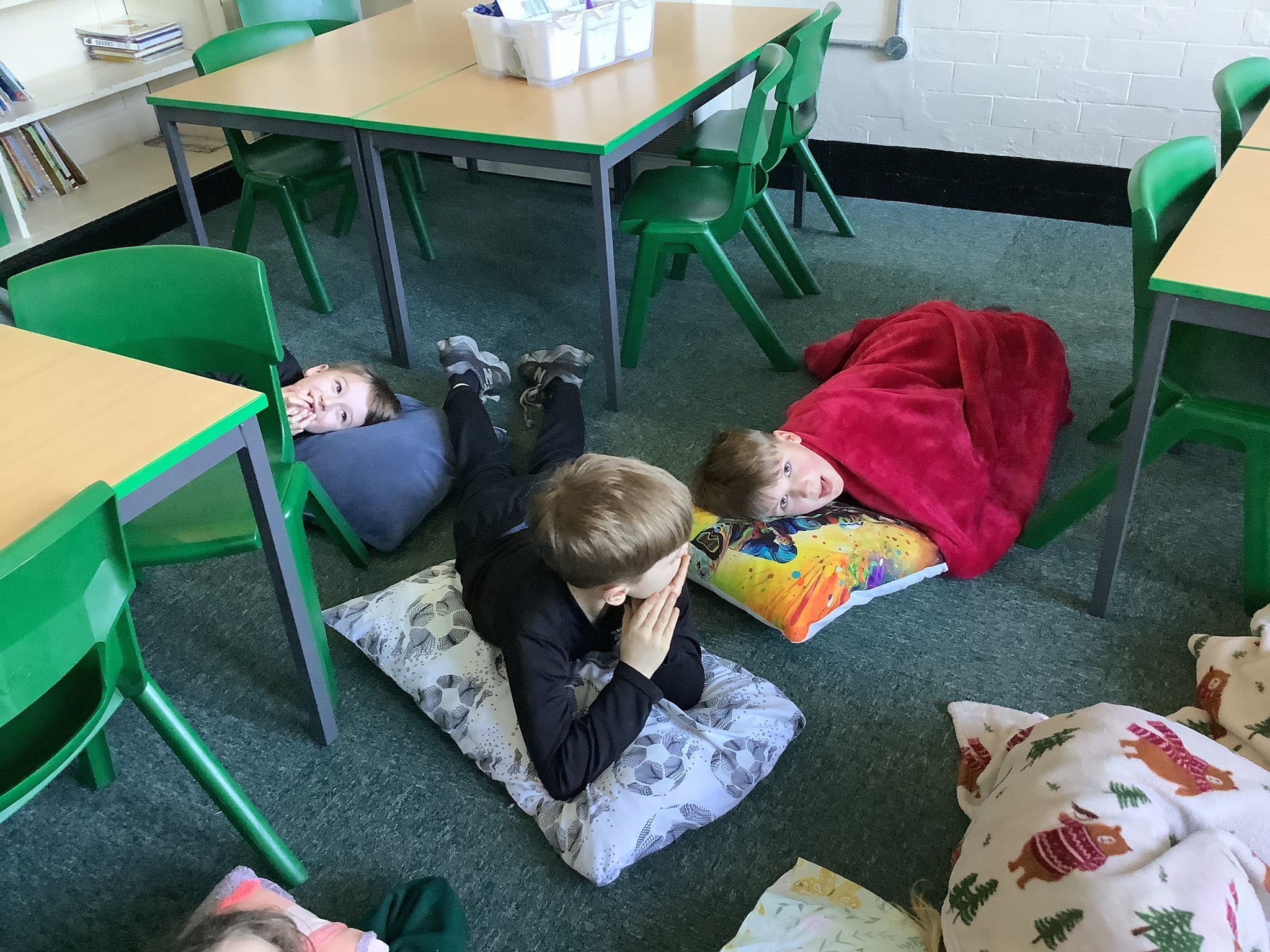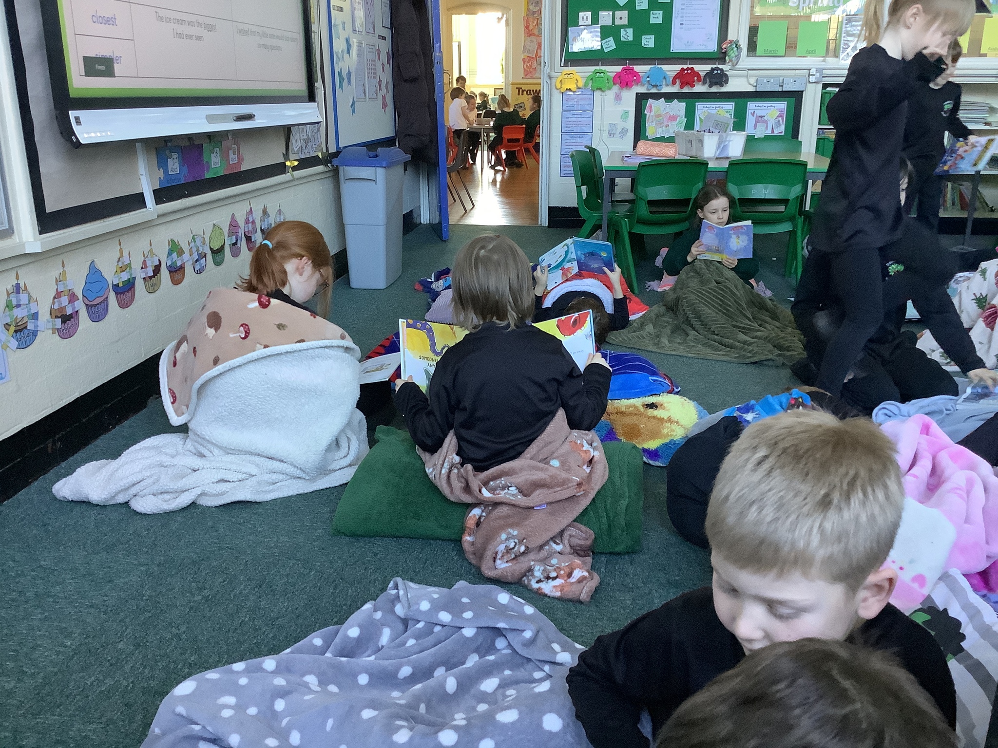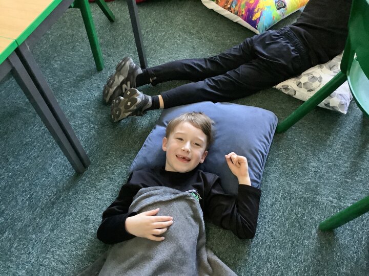 To end our busy day, we transformed the classroom into a cosy reading space. With pillows and blankets, the children snuggled up to listen to a chapter of our class novel. Afterwards, they had the chance to share their own books with one another, enjoying quiet reading time together in their cosy corners.