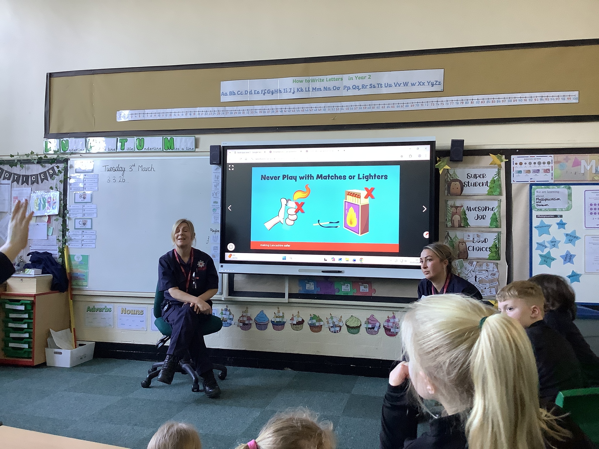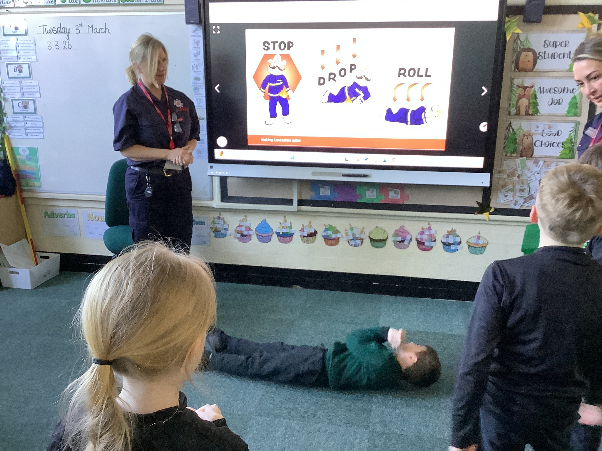 Later in the day, we were visited by the Fire Service, who spoke to the children about fire safety. They learned what to do in the event of a fire and practised the important safety message: stop, drop and roll. The children listened carefully and asked some thoughtful questions, showing great maturity and understanding.