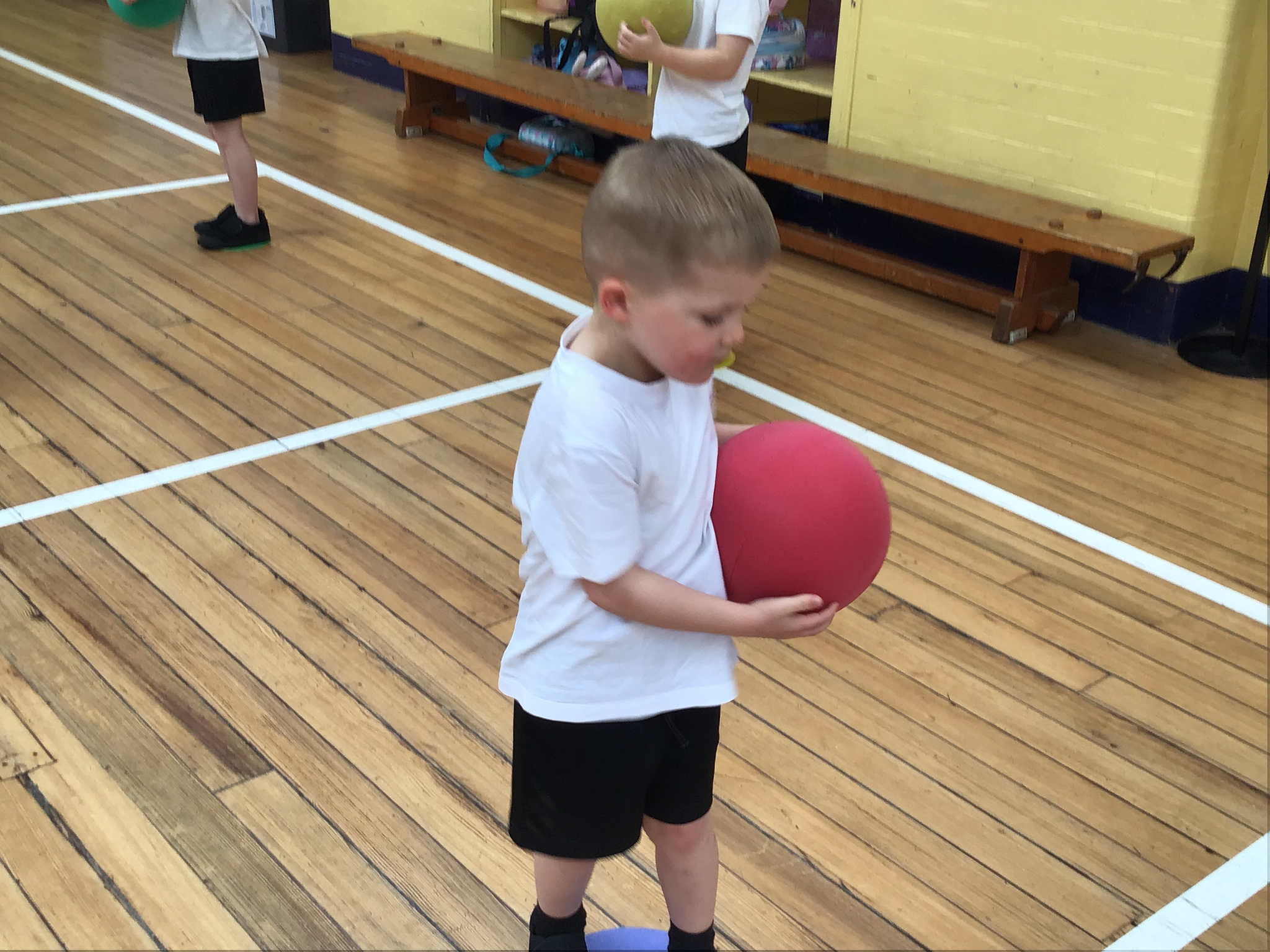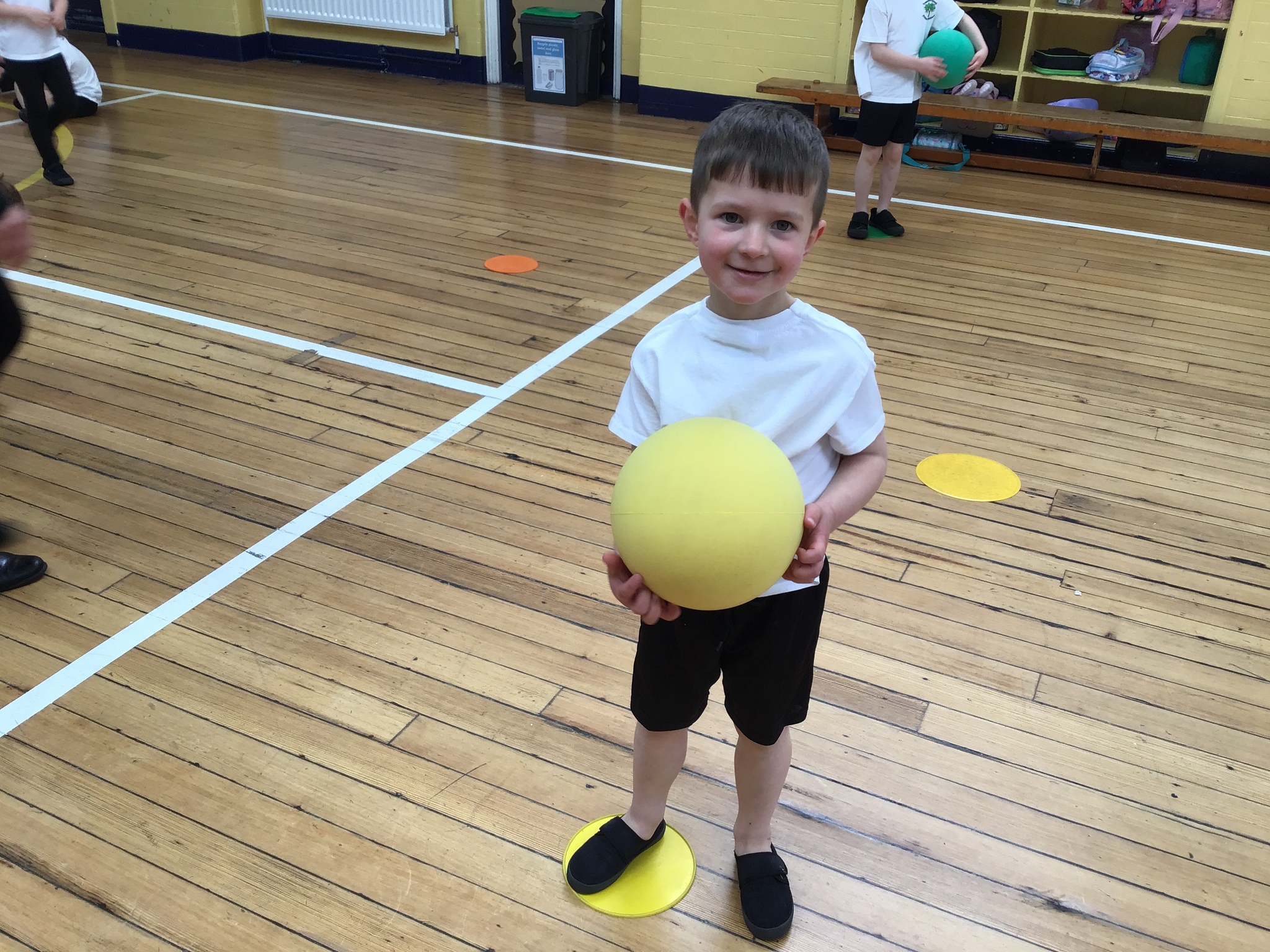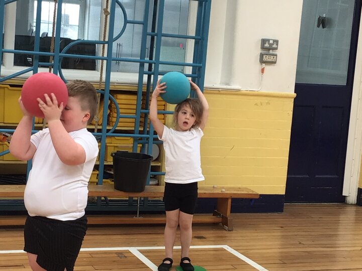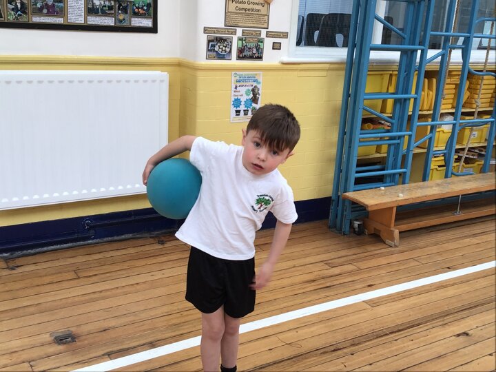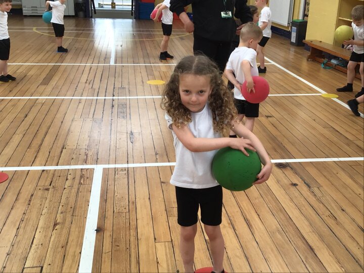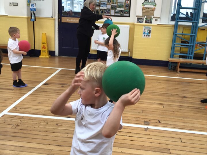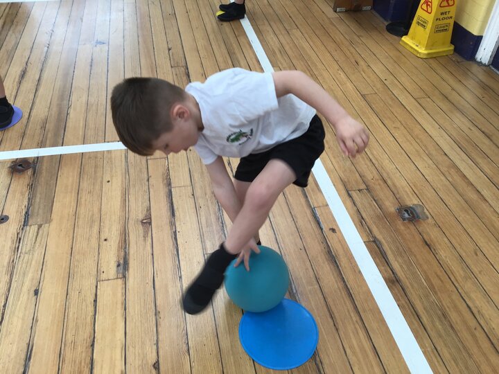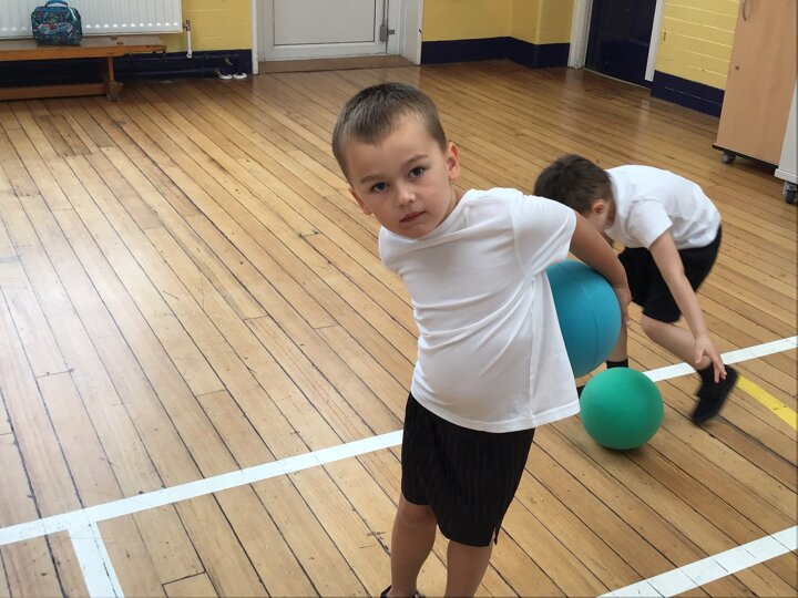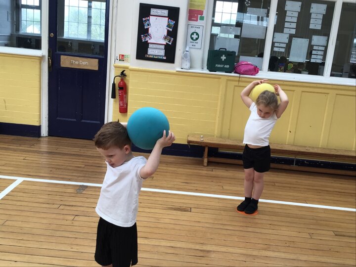 In this Reception PE lesson, the children explored different ways of moving balls using various parts of their bodies. They began by rolling balls, experimenting with using their hands, feet, elbows, and even knees, heads and stomachs to control movement. The focus was on developing coordination and confidence while having fun. As the lesson progressed, the children were introduced to balancing balls on rackets, carefully walking and adjusting their speed to keep the ball steady. This activity encouraged concentration, control, and perseverance, with lots of smiles as they practised and improved their balancing skills.